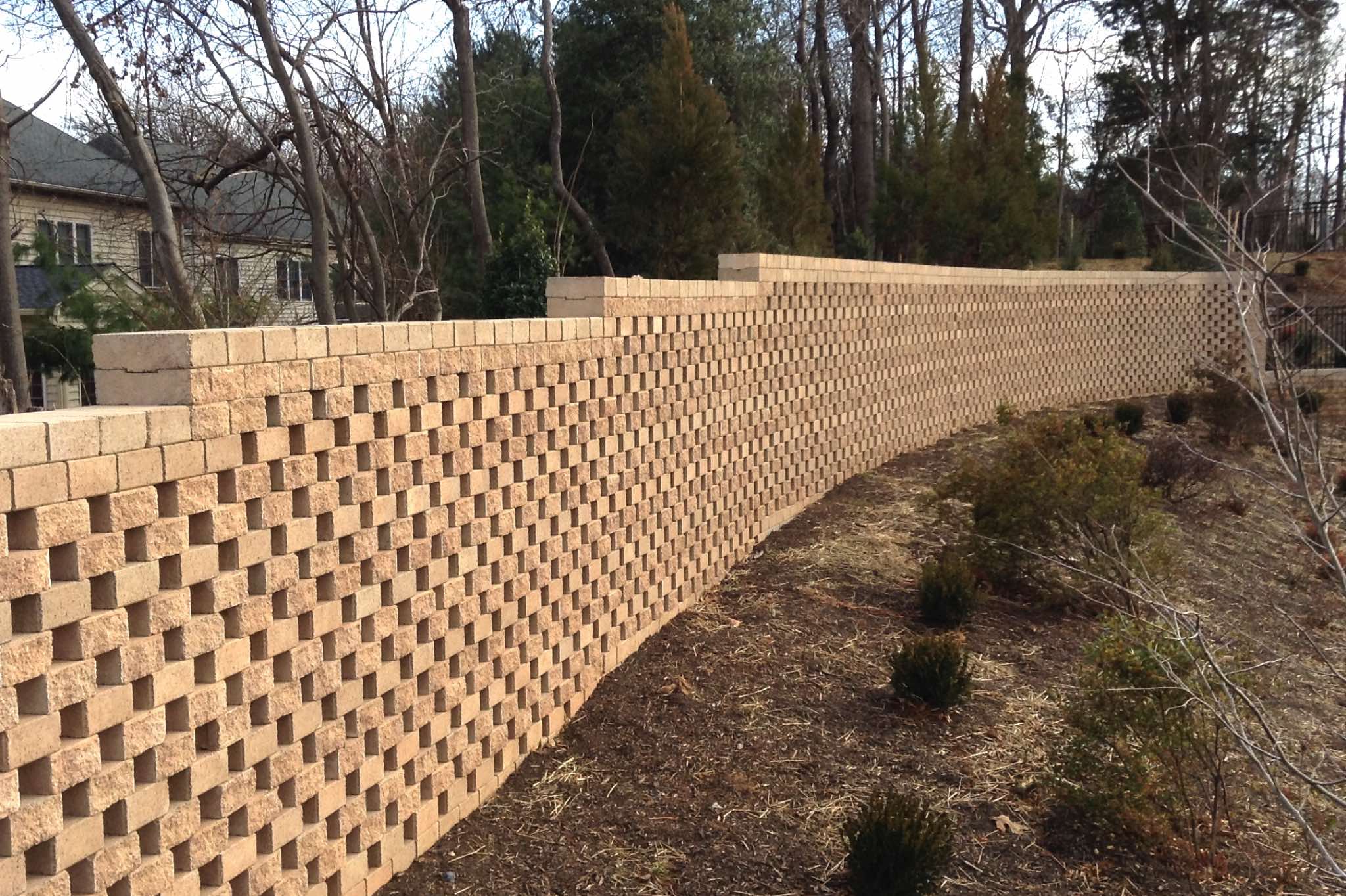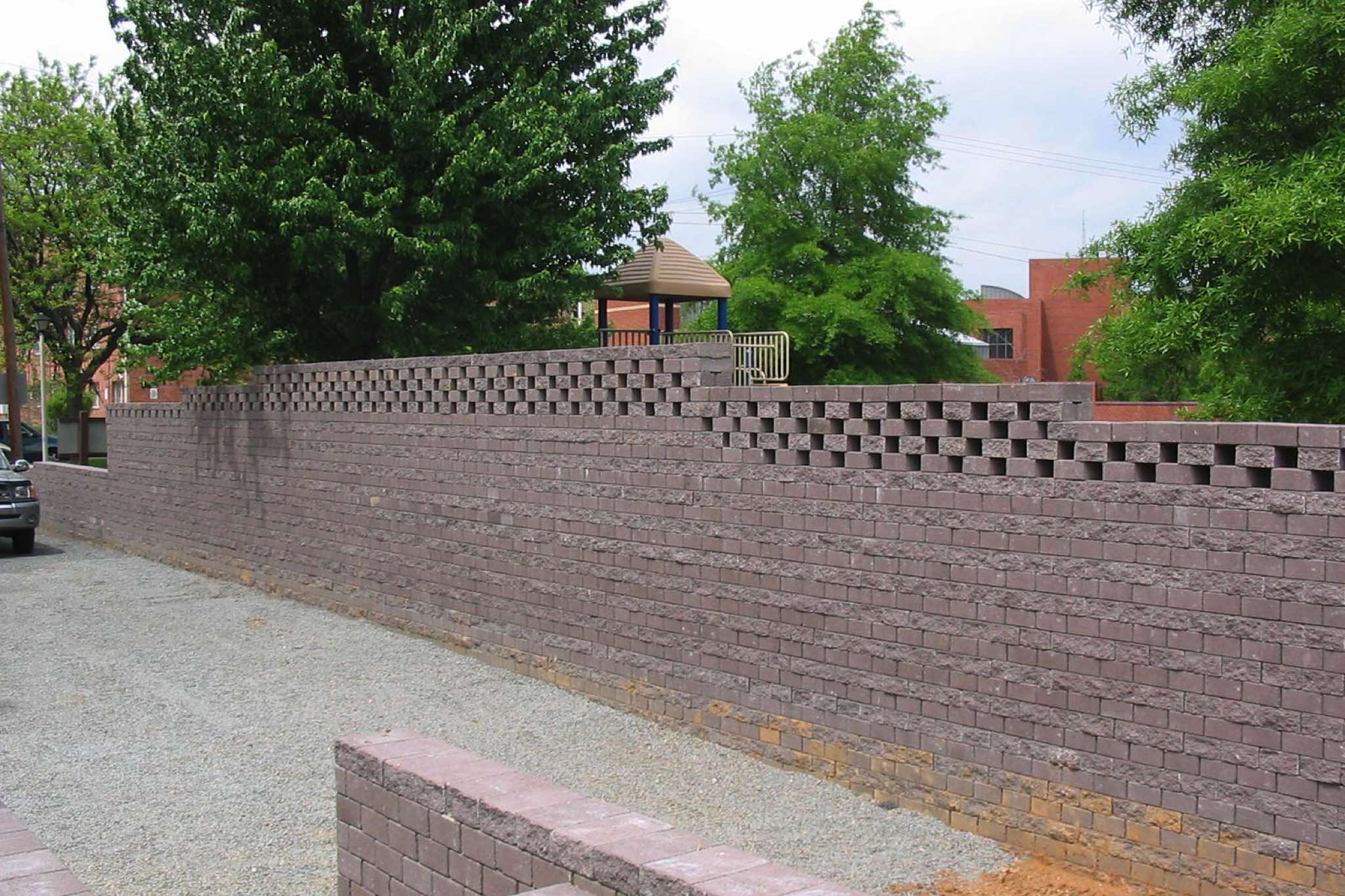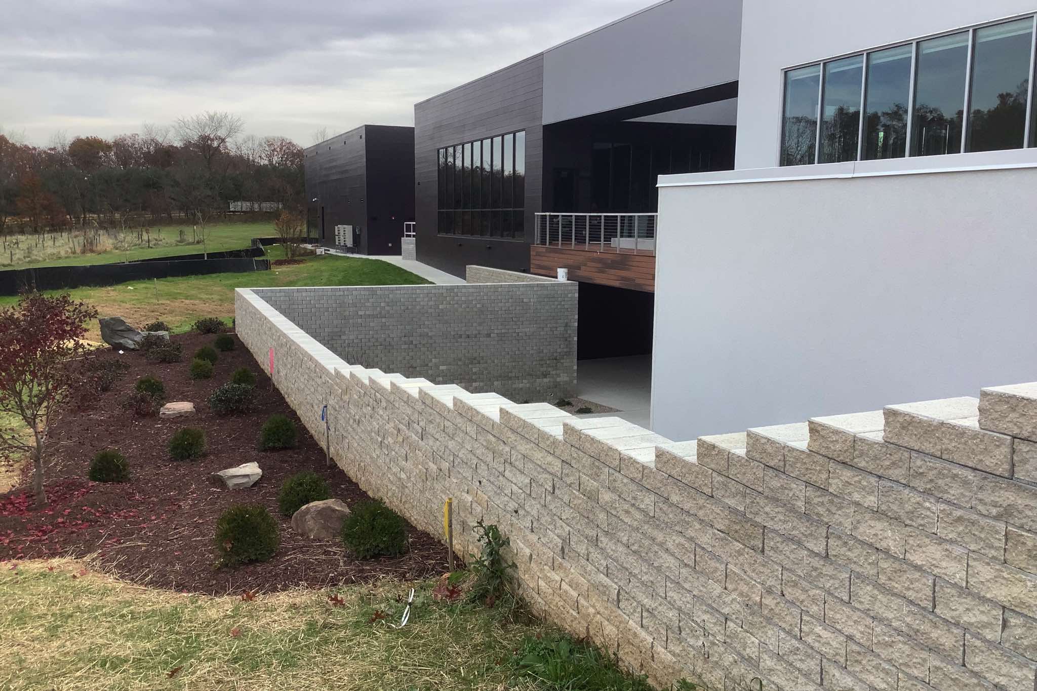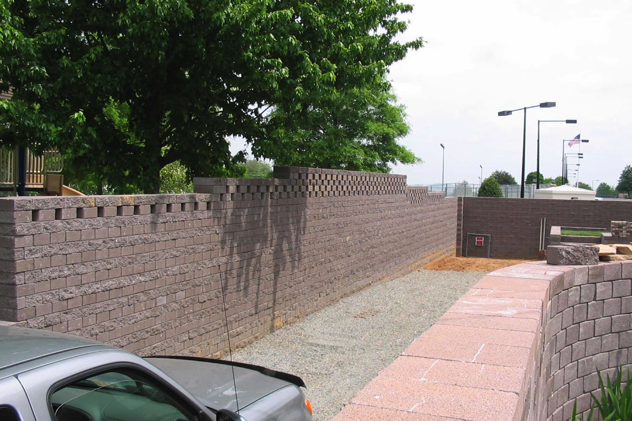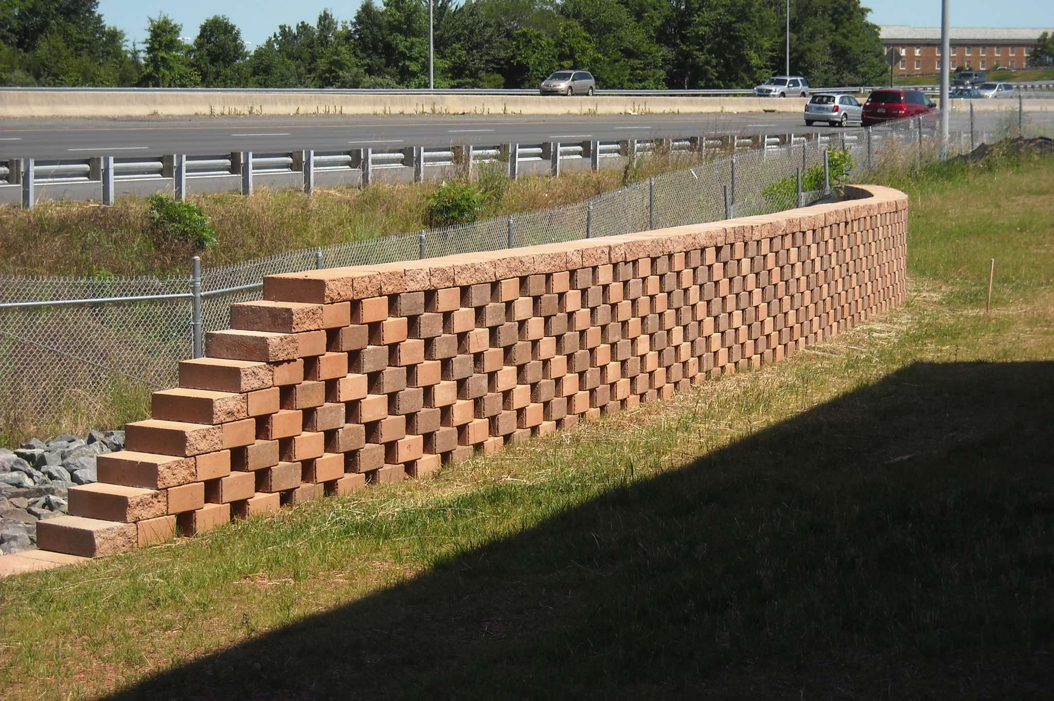 The proprietary zero-batter, 2-way interlock, geometry of TERRASTOP® coupled with its integral architectural finishes on opposite faces, allow construction of above-ground structures such as sound and privacy screens